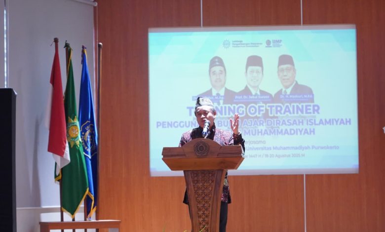 PEKALONGANMU.COM , Purwokerto – Ketua Pimpinan Wilayah Muhammadiyah (PWM) Jawa Tengah, Tafsir, hadir dan memberikan sambutan dalam Pembukaan Training of Trainer (TOT) Penggunaan Buku Ajar Dirasah Islamiyah Pesantren Muhammadiyah. Acara ini diselenggarakan oleh Lembaga Pengembangan Pesantren (LPP) PP Muhammadiyah pada Senin (18/8/2025) di Universitas Muhammadiyah Purwokerto (UMP).