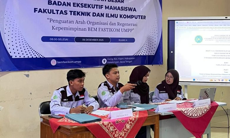 muhamamdiyahpekalongan.or.id , Pekalongan – Musyawarah Besar (Mubes) Badan Eksekutif Mahasiswa (BEM) Fakultas Teknik dan Ilmu Komputer (FASTIKOM) Universitas Muhammadiyah Pekajangan Pekalongan (UMPP) digelar pada Sabtu (6/12/2025) di Ruang A FASTIKOM UMPP.
