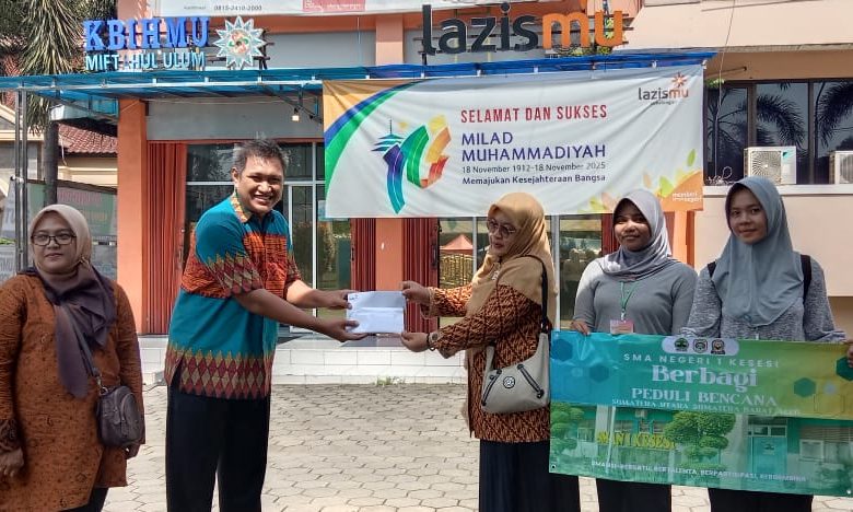 muhammadiyahpekalongan.or.id , PEKALONGAN – Kepedulian sosial ditunjukkan keluarga besar SMA Negeri 1 Kesesi, Kabupaten Pekalongan, dengan menyalurkan donasi untuk korban bencana di Sumatera melalui Lembaga Amil Zakat Infaq dan Shadaqah Muhammadiyah (Lazismu) Kabupaten Pekalongan. Penyerahan dilakukan pada Kamis (11/12/2025) di kantor Lazismu, Jalan Pahlawan No. 10 Gejlik, Kajen, Pekalongan.
