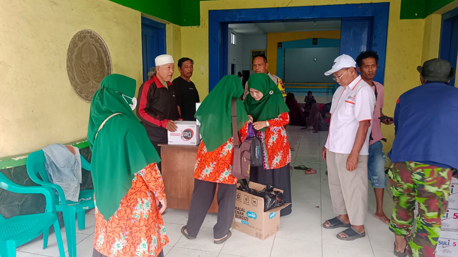 Selain layanan kesehatan, panitia menyalurkan bantuan logistik berupa biskuit Cahaya sebanyak dua karton, minyak kayu putih untuk 90 kepala keluarga, serta air mineral.