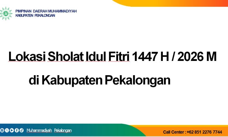 muhammadiyahpekalongan.or.id I KAJEN – Menjelang perayaan Idul Fitri 1447 H yang jatuh pada Jumat, 20 Maret 2026, warga Kabupaten Pekalongan kini mulai mempersiapkan diri untuk menunaikan ibadah salat Id. Pimpinan Daerah Muhammadiyah (PDM) Kabupaten Pekalongan sendiri telah menyiapkan titik lokasi sholat Idul Fitri 2026 di Kabupaten Pekalongan sebagai berikut : download daftar lokasi